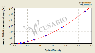 通過(guò)線性范圍來(lái)計(jì)算出實(shí)際的檢測(cè)樣本值,定量試劑盒標(biāo)準(zhǔn)曲線的相關(guān)系數(shù)R大于0.99。以CSB-E07270h(人脂聯(lián)素(ADP)ELISA Kit)為例的標(biāo)準(zhǔn)曲線。