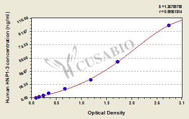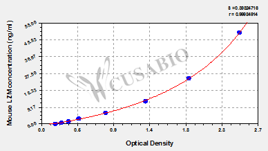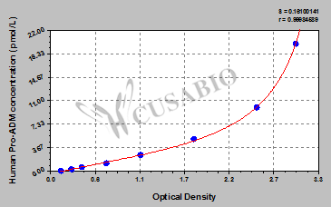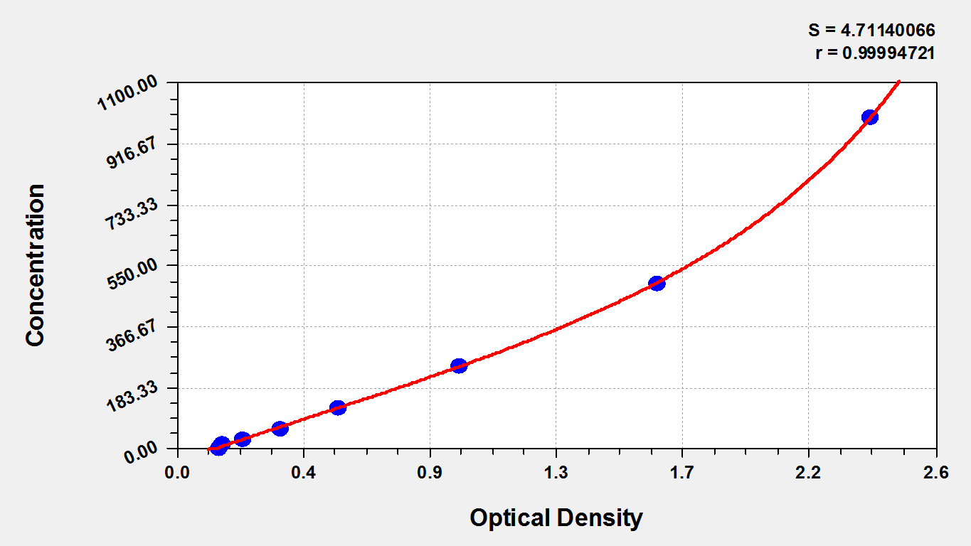 通過線性范圍來計算出實際的檢測樣本值,定量試劑盒標準曲線的相關系數(shù)R大于0.99。以CSB-E07270h(人脂聯(lián)素(ADP)ELISA Kit)為例的標準曲線。