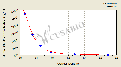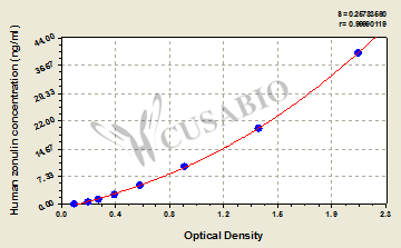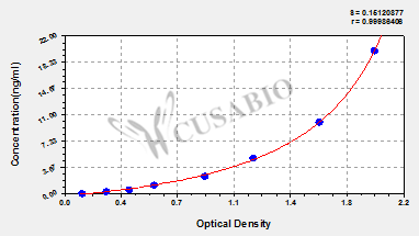 通過線性范圍來計算出實際的檢測樣本值,定量試劑盒標準曲線的相關(guān)系數(shù)R大于0.99。以CSB-E07270h(人脂聯(lián)素(ADP)ELISA Kit)為例的標準曲線。