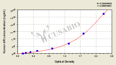 通過線性范圍來計(jì)算出實(shí)際的檢測(cè)樣本值,定量試劑盒標(biāo)準(zhǔn)曲線的相關(guān)系數(shù)R大于0.99。以CSB-E07270h(人脂聯(lián)素(ADP)ELISA Kit)為例的標(biāo)準(zhǔn)曲線。