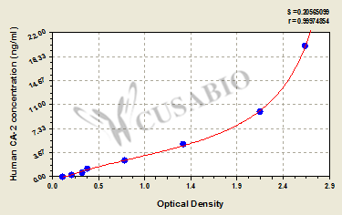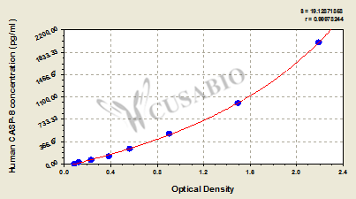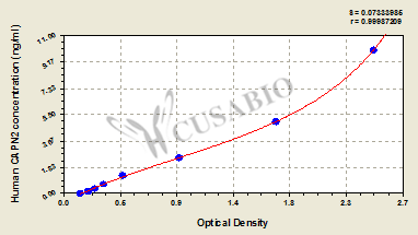通過線性范圍來計(jì)算出實(shí)際的檢測樣本值,定量試劑盒標(biāo)準(zhǔn)曲線的相關(guān)系數(shù)R大于0.99。以CSB-E07270h(人脂聯(lián)素(ADP)ELISA Kit)為例的標(biāo)準(zhǔn)曲線。