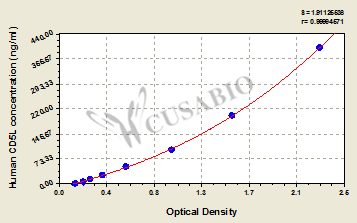 通過線性范圍來計算出實際的檢測樣本值,定量試劑盒標準曲線的相關(guān)系數(shù)R大于0.99。以CSB-E07270h(人脂聯(lián)素(ADP)ELISA Kit)為例的標準曲線。