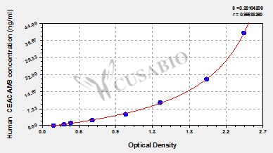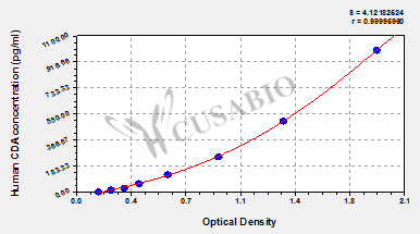 通過線性范圍來計算出實際的檢測樣本值,定量試劑盒標準曲線的相關(guān)系數(shù)R大于0.99。以CSB-E07270h(人脂聯(lián)素(ADP)ELISA Kit)為例的標準曲線。