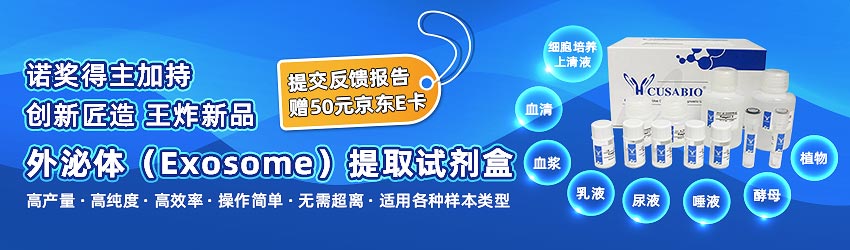 CUSABIO外泌體提取試劑盒提供了一種簡單可靠的方法,可從細胞培養(yǎng)上清液,血清,血漿,乳液,尿液,唾液、酵母、植物中提取完整的外泌體。