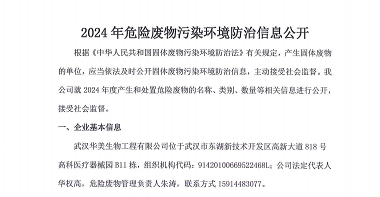 2024年華美危險(xiǎn)廢物污染環(huán)境防治信息公開