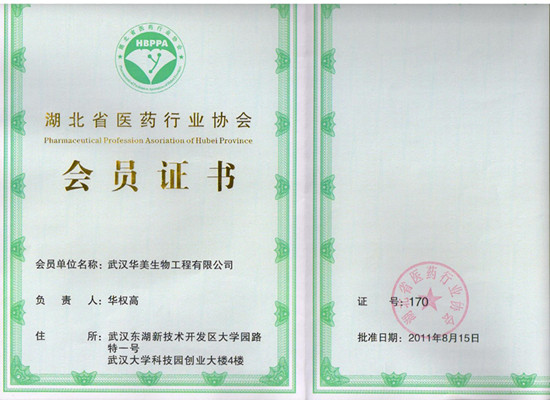 2011年8月15日,武漢華美生物工程有限公司正式成為湖北省醫(yī)藥行業(yè)協(xié)會會員。 湖北省醫(yī)藥行業(yè)協(xié)會于2005年6月由湖北省醫(yī)藥行業(yè)十余家企業(yè)聯(lián)合倡議發(fā)起組織,于2005年8月4日經(jīng)湖北省民政廳批準(zhǔn)正式成立。它是適應(yīng)...