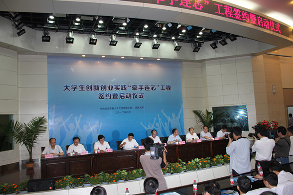 2012年6月20日上午,大學(xué)生創(chuàng)新創(chuàng)業(yè)實踐“牽手連芯”工程簽約暨啟動儀式在武漢大學(xué)化學(xué)與分子科學(xué)學(xué)院創(chuàng)隆廳隆重舉行。省委常委、市委書記、市人大常委會主任阮成發(fā),市長唐良智,武漢大學(xué)黨委書記李健、校長李曉...