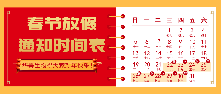 放假通知|武漢華美生物春節(jié)假期訂貨及發(fā)貨安排