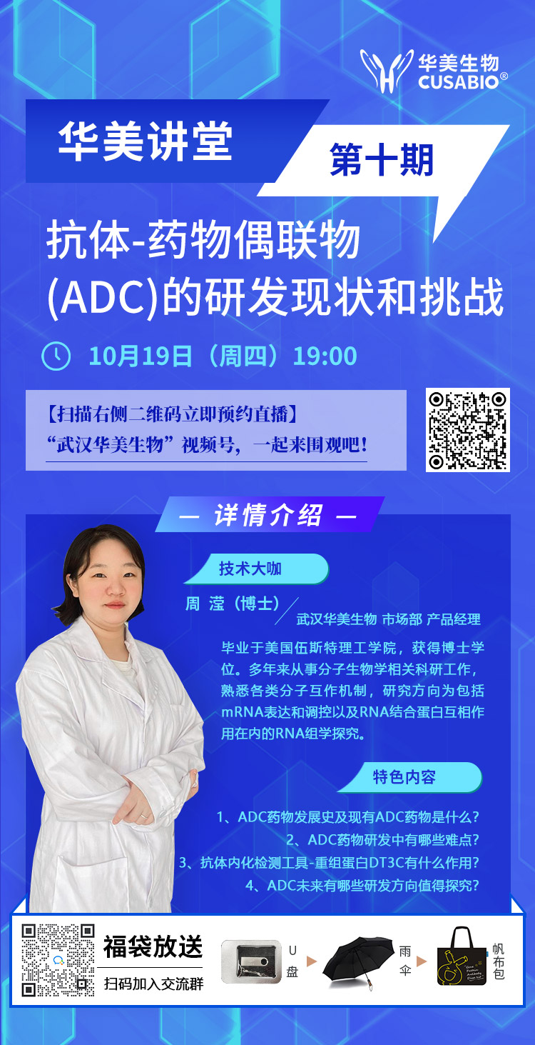 華美講堂第十期直播來襲!直播主題:抗體-藥物偶聯(lián)物(ADC)的研發(fā)現(xiàn)狀和挑戰(zhàn)直播時間:2023年10月19日(周四)19:00直播間:武漢華美生物