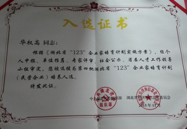 祝賀集團(tuán)董事長華權(quán)高先生入選2015年度“黃鶴英才(科技)計劃”
