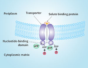ATP結(jié)合轉(zhuǎn)運(yùn)盒蛋白(ABC)可以結(jié)合和水解ATP,并利用能量驅(qū)動(dòng)各種分子穿過(guò)質(zhì)膜以及內(nèi)質(zhì)網(wǎng)(ER)、過(guò)氧化物酶體和線粒體內(nèi)膜。它參與脂質(zhì)膜上特定分子的運(yùn)輸以及所有生物體的抗性。