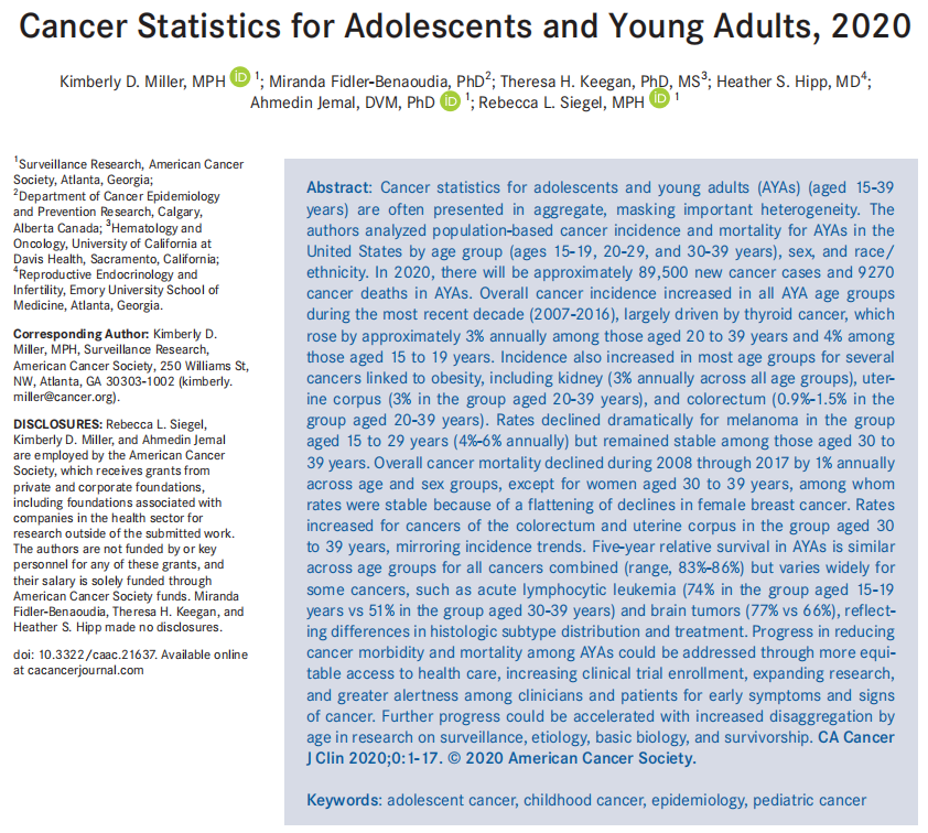 數(shù)讀|神刊CA(IF=292)首發(fā)青少年癌癥統(tǒng)計(jì)報(bào)告