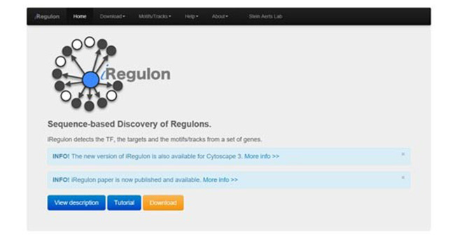 iRegulon(http://iregulon.aertslab.org/)包含轉(zhuǎn)錄因子(TF)及其直接轉(zhuǎn)錄 DNA序列組成,在轉(zhuǎn)錄序列的順式作用元件處包含與TF結(jié)合位點(diǎn)。另外,iRegulon插件可以讓 您用一組共同調(diào)節(jié)基因中的基序來識別調(diào)節(jié)子。