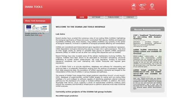 DIANA(http://diana.imis.athena- innovation.gr/DianaTools/index.php)是miRNA研究工具的集錦。這個(gè)數(shù)據(jù)庫有四個(gè)功 能特色:microT-CDS預(yù)測microRNA靶基因;LncBase v.2是基于miRNA預(yù)測lncRNA;miRGen v.3是預(yù)測miRNA啟動子和調(diào)節(jié)因子,如轉(zhuǎn)錄因子;Mirpub是miRNA相關(guān)文章。