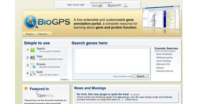 BioGPS(http://biogps.org/)是一個(gè)基于現(xiàn)有的遺傳和基因組資 源,可自由拓展和定制的基因注釋網(wǎng)站。BioGPS可為用戶提供一個(gè)探索感興趣基因間聯(lián)系的 場所。目前,BioGPS主要包含了人類、小鼠和大鼠的基因。