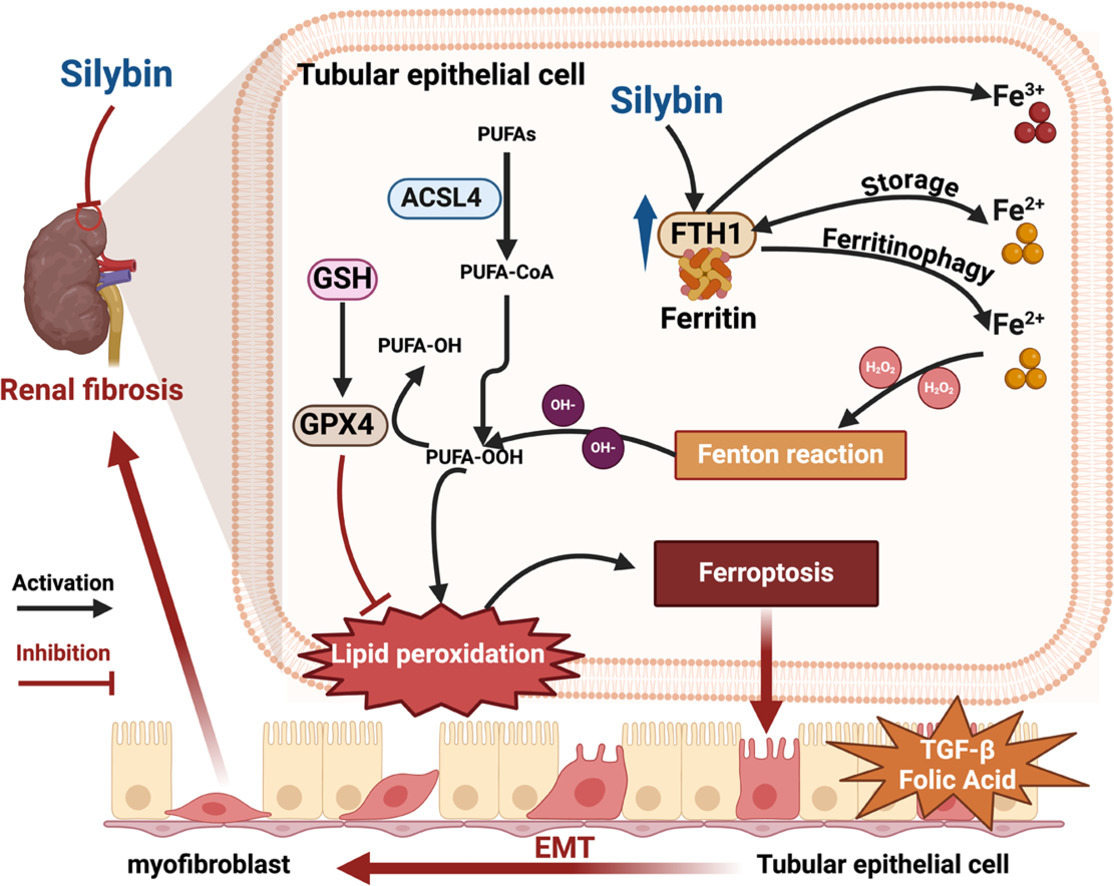 來源:Suppressing ferroptosis via modulating FTH1 by silybin for ttreatment of renal fibrosis.Phytomedicine,2025 Jun 19