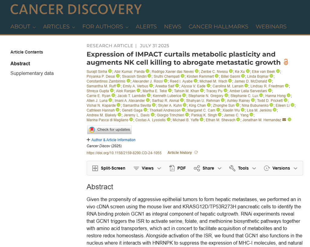 來源:Expression of IMPACT curtails metabolic plasticity and augments NK cell killing to abrogate metastatic growth.Cancer Discov,2025 Jul 31