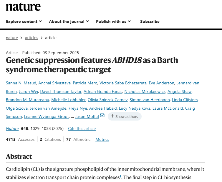 [3]Genetic suppression features ABHD18 as a Barth syndrome therapeutic target.Nature,2025 Sep 03