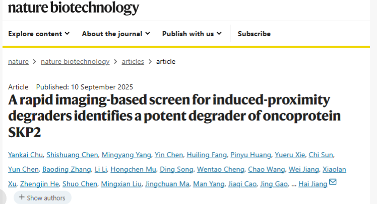 [1]A rapid imaging-based screen for induced-proximity degraders identifies a potent degrader of oncoprotein SKP2.Nat Biotechnol,2025 Sep 10