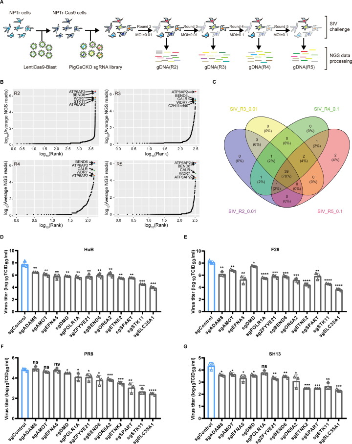 華中農(nóng)業(yè)大學(xué)周紅波團(tuán)隊利用豬全基因組CRISPR文庫篩選發(fā)現(xiàn),宿主激酶STK11通過激活RhoA-MLC/LIMK通路重塑肌動蛋白應(yīng)力纖維,維持細(xì)胞膜上唾液酸簇?zé)o序交錯構(gòu)象,為甲型流感病毒HA提供多價結(jié)合界面,從而顯著增強(qiáng)病毒吸附;敲除或抑制STK11可跨物種阻斷IAV復(fù)制并提高小鼠存活率,首次揭示“STK11–RhoA–細(xì)胞骨架”軸調(diào)控病毒入侵的新范式 。