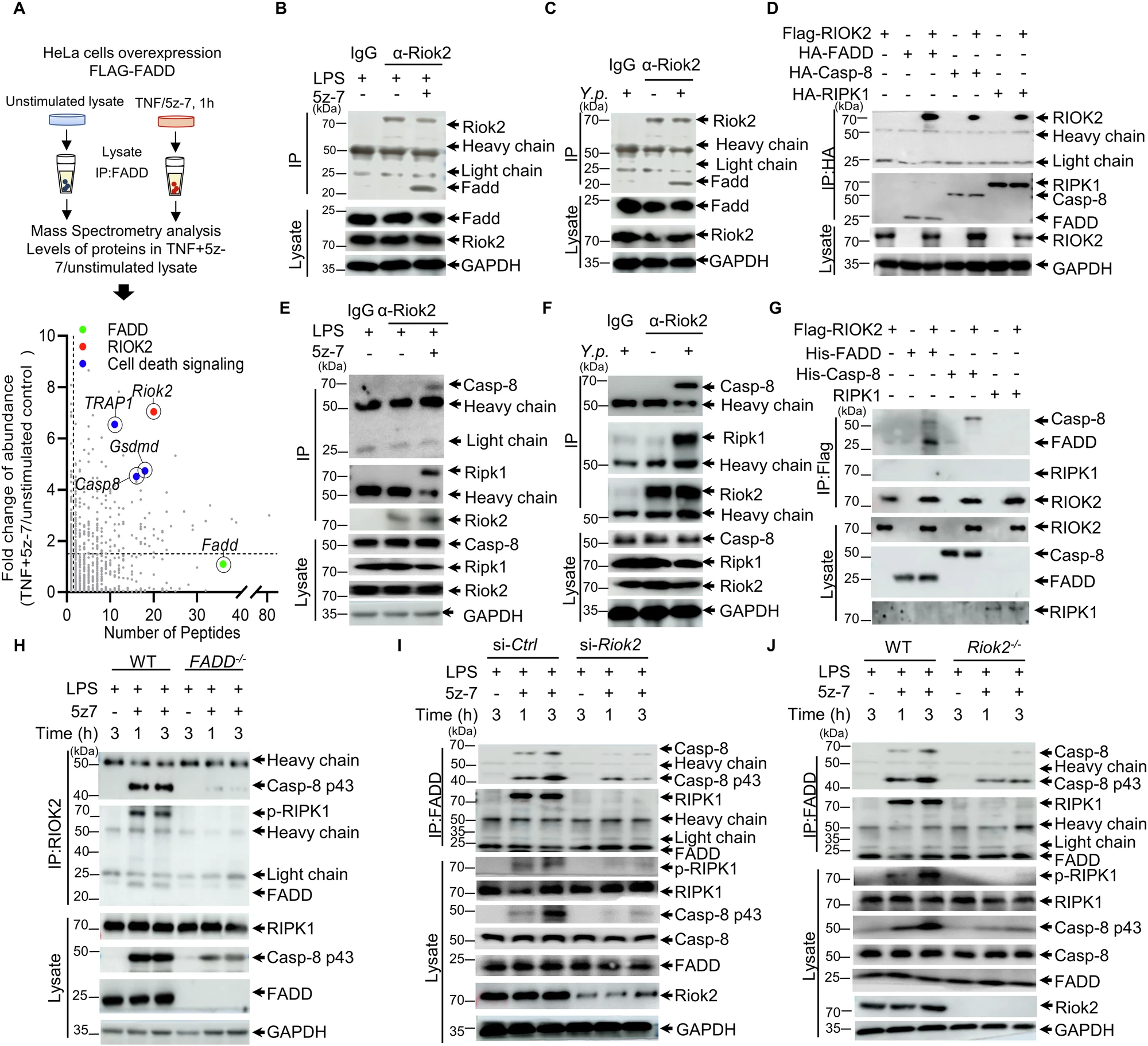 來源:RIOK2 kinase regulates the translocation of the FADD–RIPK1–Caspase-8 complex to the ER and the cleavage of Gasdermin D to drive pyroptosis.Nat Commun,2025 Nov 17