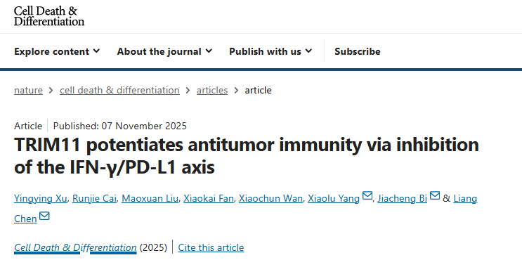 來源:TRIM11 potentiates antitumor immunity via blocking IFNγ/PD-L1 axis.Cell Death Differ,2025 Nov 07