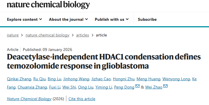 來源:Deacetylase-Independent HDAC1 Condensation Defines Temozolomide Response in Glioblastoma.Nat Chem Biol,2026 Jan 09