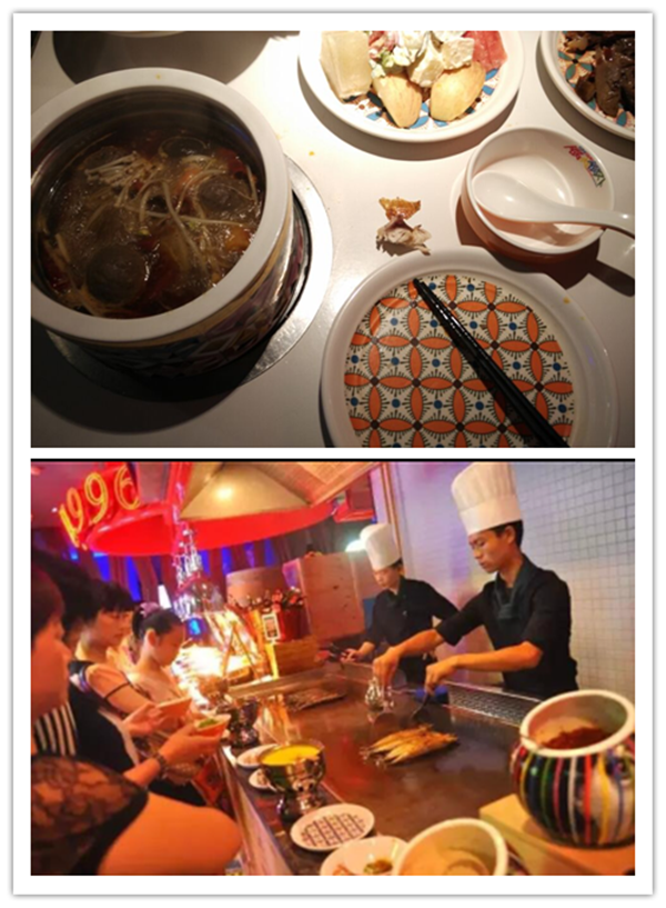 待我們各自選擇了自己的鍋底之后,就是我們大顯身手的時(shí)候了,基圍蝦、魚、鴨翅、雞腿、牛肉丸……還有供不應(yīng)求的牛排,各種各樣的海鮮,我們一行人弄了一桌子的美食,盡收鍋里,伴隨著溫度的升高,空氣中的香味也漸漸變得濃郁起來,然而我們的胃早就等待著這一刻的到來。