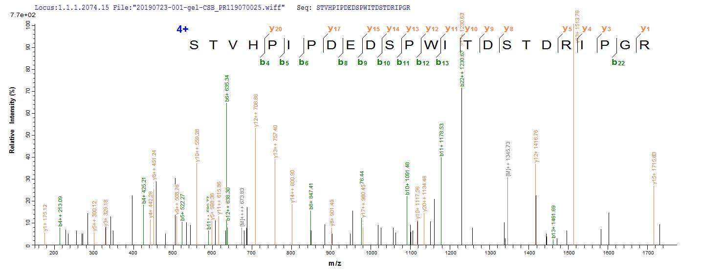 Based on the SEQUEST from database of Mammalian Cell host and target protein, the LC-MS/MS Analysis result of CSB-MP004938HU(F1) could indicate that this peptide derived from Mammalian Cell-expressed Homo sapiens (Human) CD44.