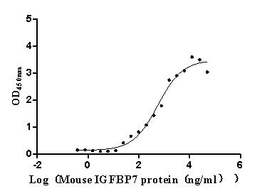 Activity: Measured by its binding ability in a functional ELISA. Immobilized Mouse CD93 at 2 μg/mL can bind Mouse IGFBP7 (CSB-MP713980MO), the EC50 is 373.4-836.8 ng/mL.