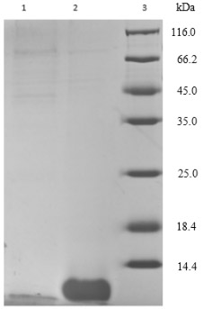 難點(diǎn):46氨基酸,7kDa,分子量非常小,相對(duì)來(lái)說(shuō)不太容易檢測(cè)及濃縮,從SDS-PAGE檢測(cè)圖來(lái)看表達(dá)、純化、收集都非常成功。