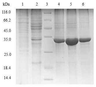 該蛋白分子量比較小,表達(dá)難度較高,采用我公司的pFastBac1-MBP載體進(jìn)行融合表達(dá)后,融合蛋白成功表達(dá),后經(jīng)過酶切和二次純化后,目的蛋白純度達(dá)到95%。