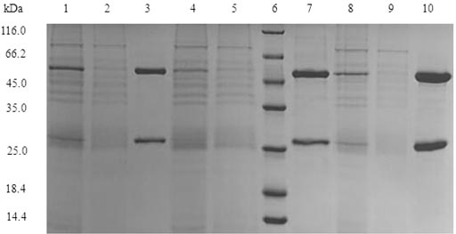 - N端含有10xHis較常規(guī)6xHis在IMAC中具有更強(qiáng)結(jié)合能力,同時(shí)含有凝血酶位點(diǎn)可去除標(biāo)簽得到無(wú)標(biāo)簽蛋白;